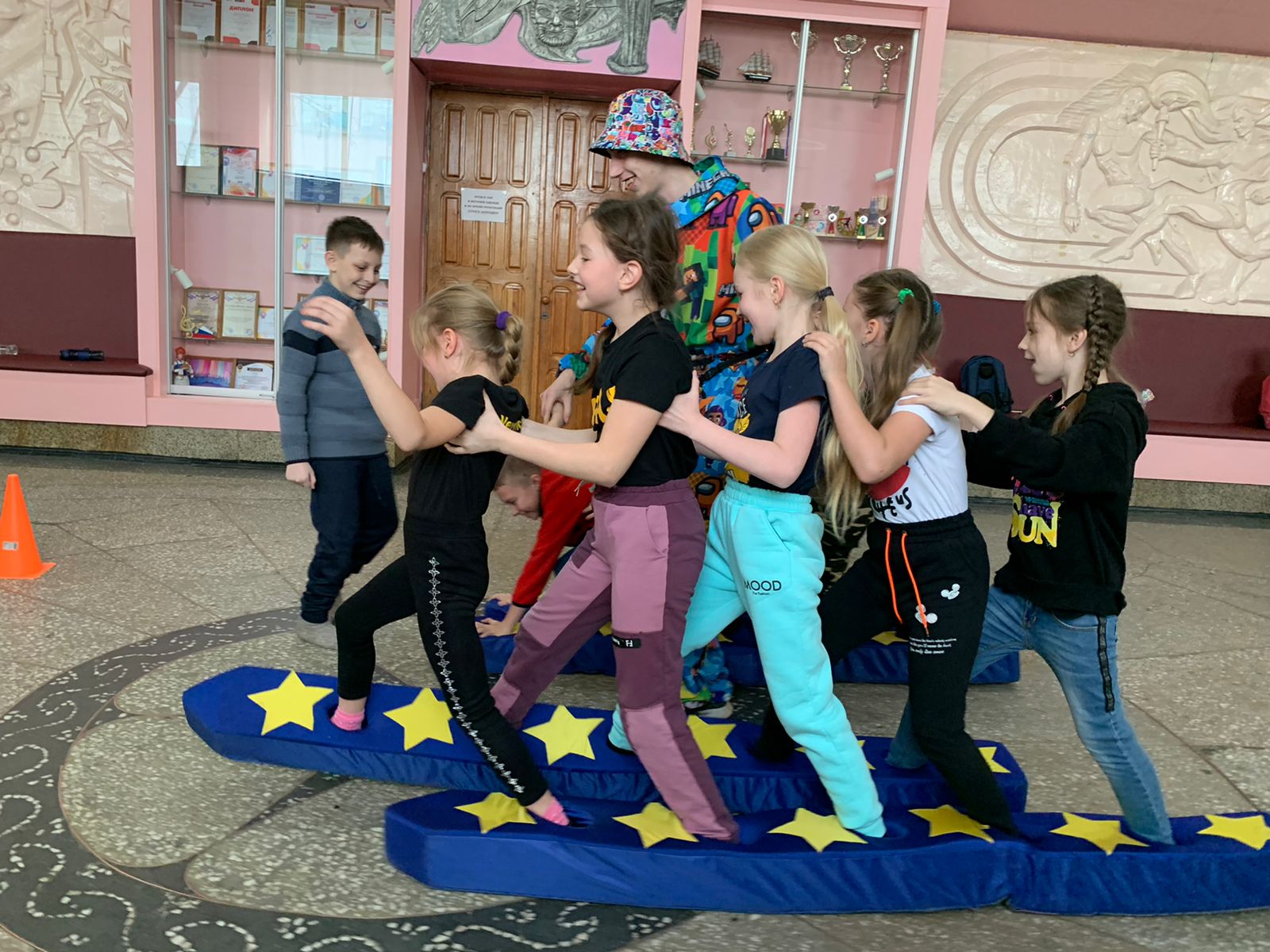Участники команд состязались в спортивных эстафетах, проверяли себя на ловкость с помощью игры «Три прыжка», соревновались на скорость и командную работу в забеге на гигантских лыжах, а также активно отвечали на вопросы тематической викторины с помощью игры «Крестики-Нолики».
