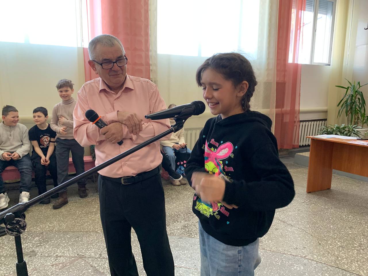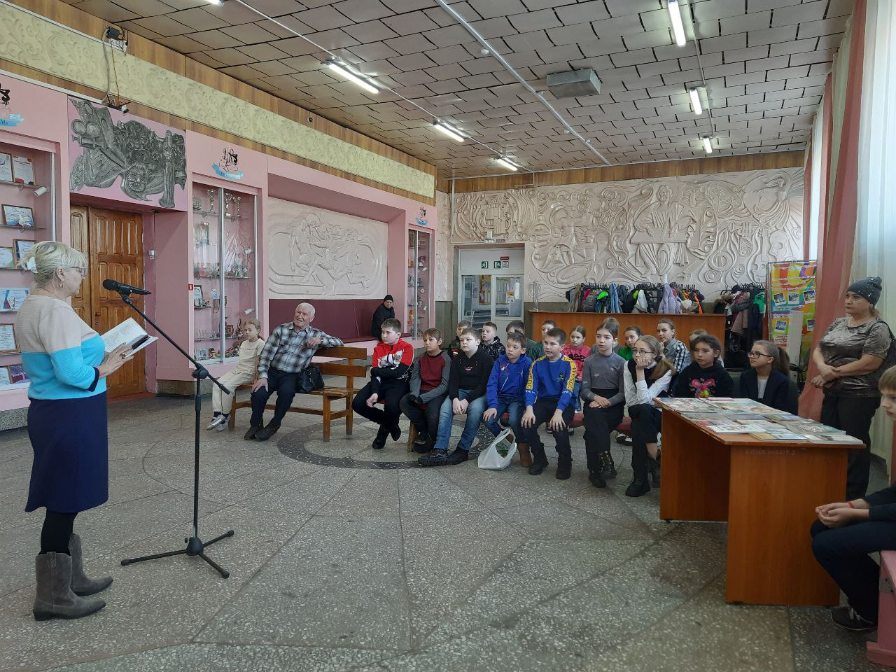 Перед ребятами выступили члены литературной студии города Белогорска: Ирина Михайловна Печинская, прочитавшая авторские стихи, написанные специально для детей, а также Николай Петрович Безматерных, который прочитал для детей стихи А.С. Пушкина.