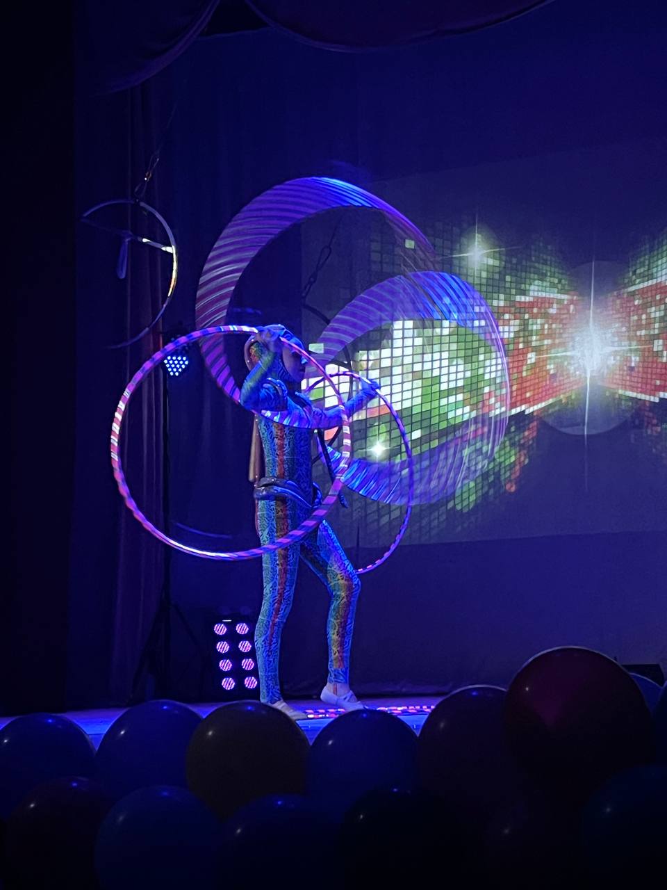 Каждый компонент подкреплялся характерными концертными номерами ребят, показавшие чудеса эквилибра, акробатики, жонгляжа и воздушной гимнастики.