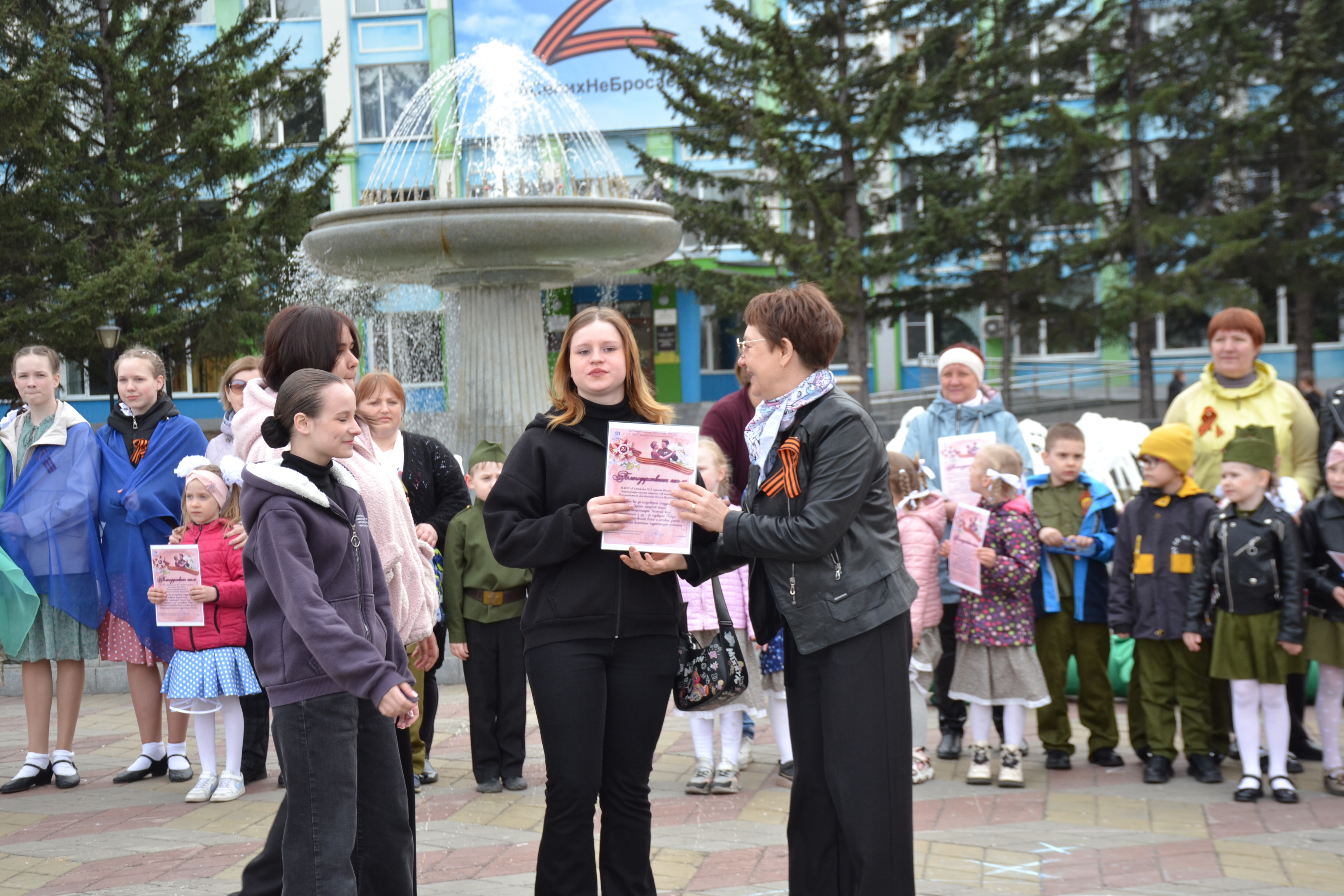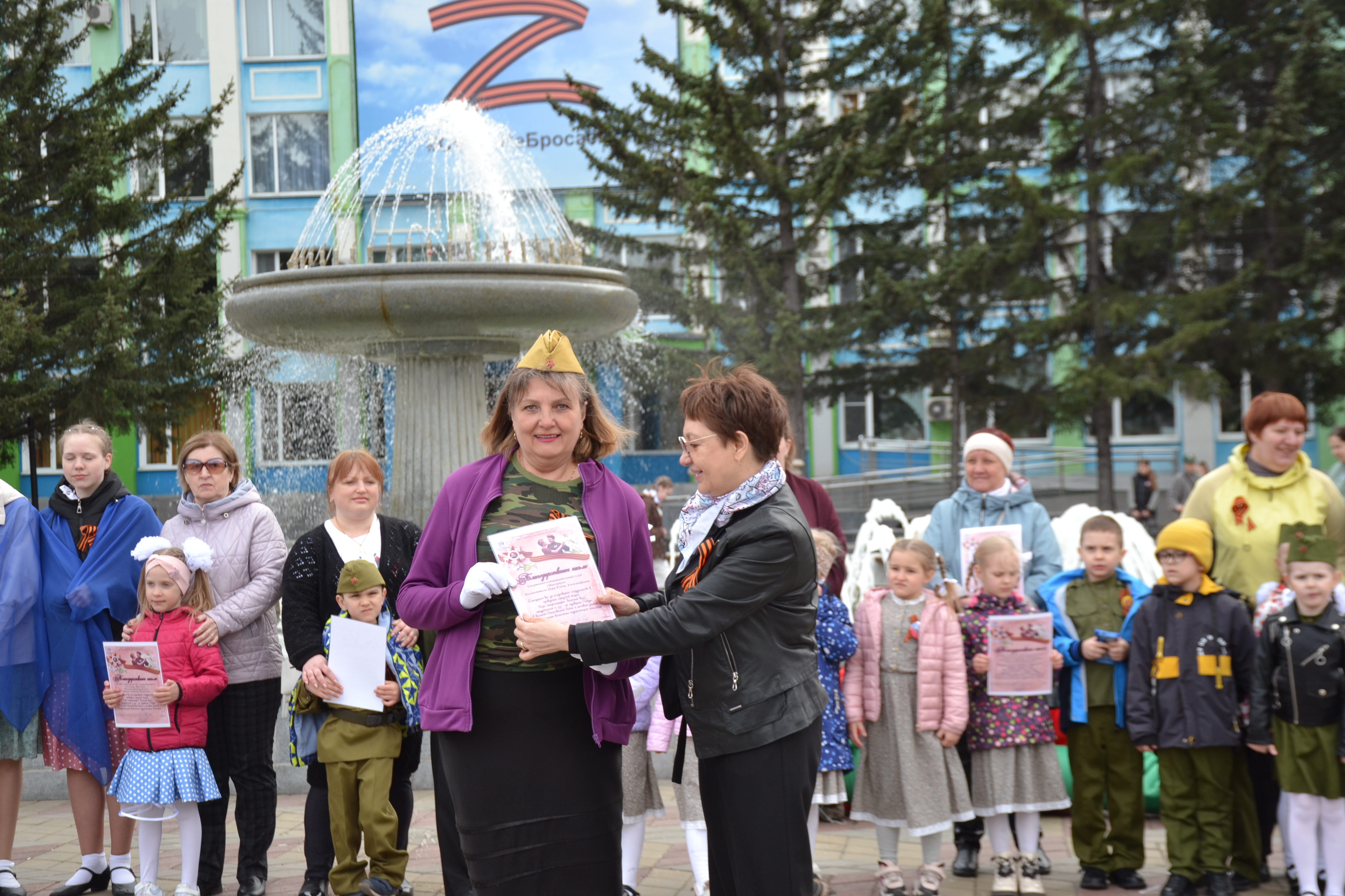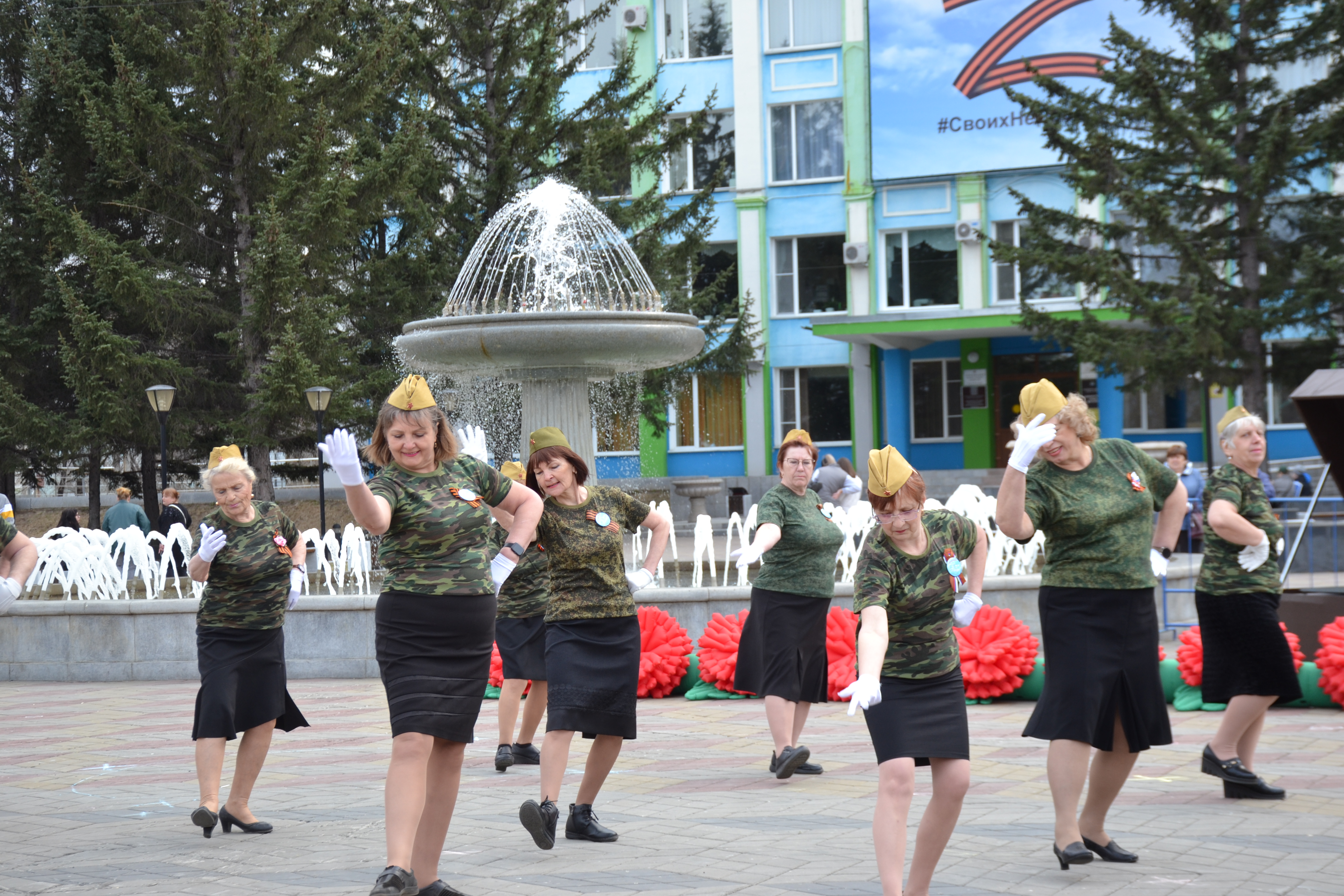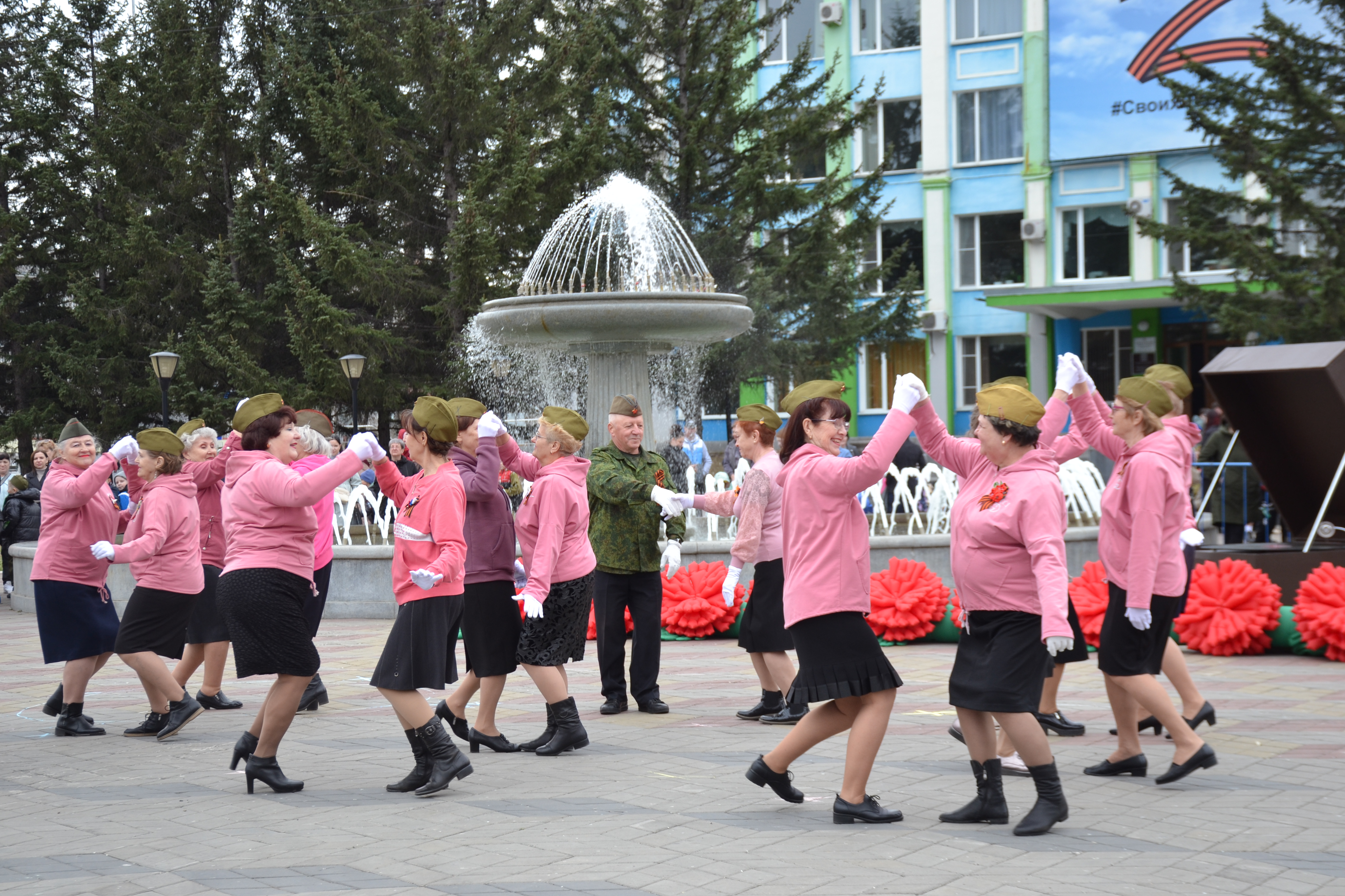 После исполнения своих приготовленных танцев, участники приняли участие в общем флешмобе "Майский вальс".