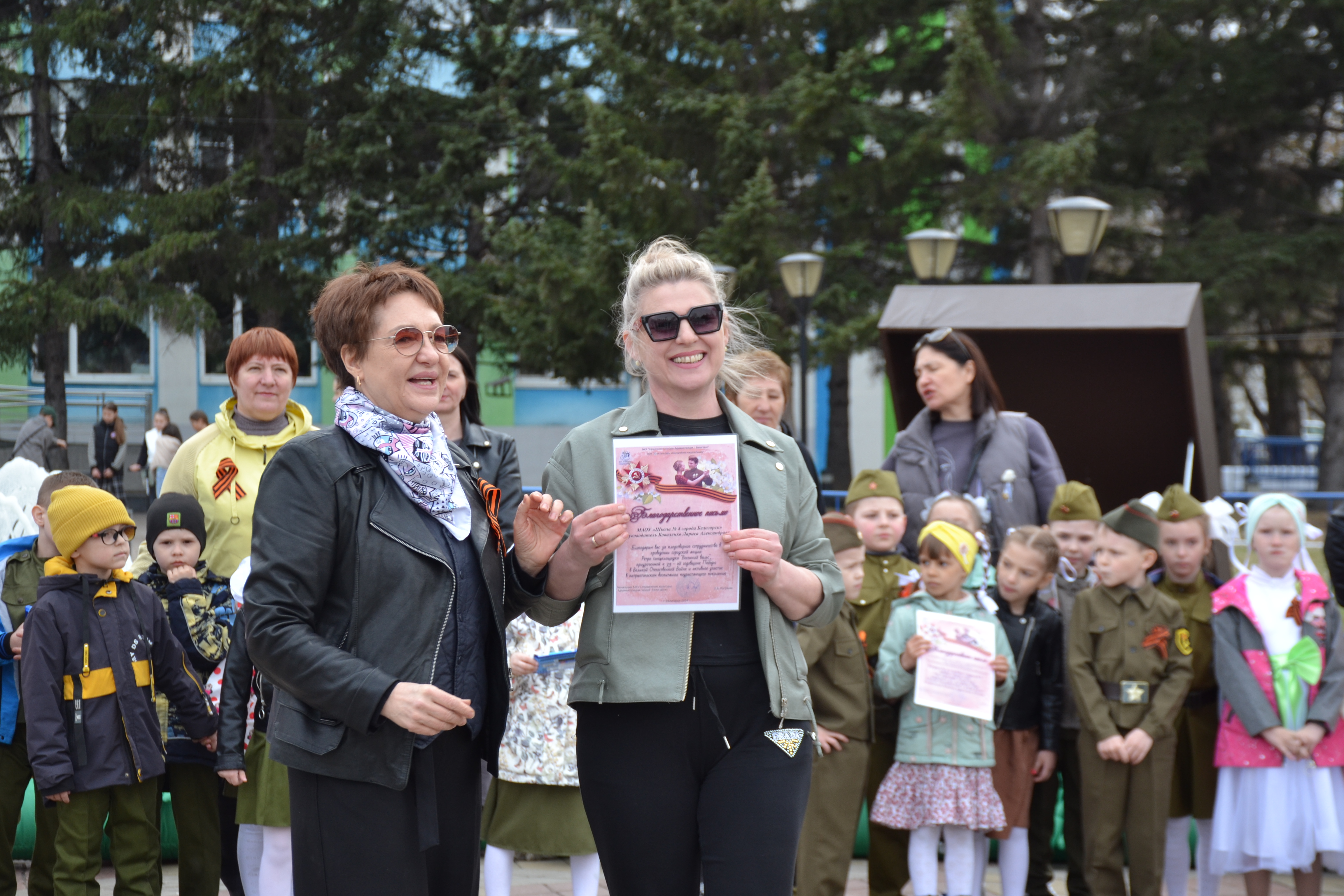 Перед началом акции "Весенний вальс" своими музыкальными военными композициями белогорцев порадовал военный духовой оркестр 165-й артиллерийской бригады. Также зрителям вручили более трёхсот лент-символов в рамках акции "Георгиевская ленточка".
