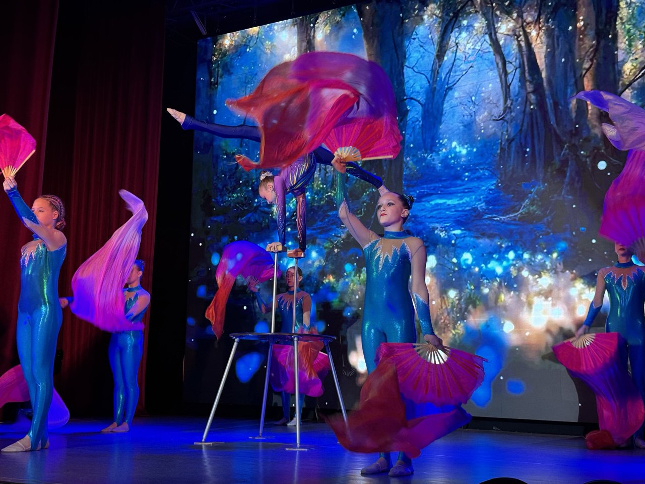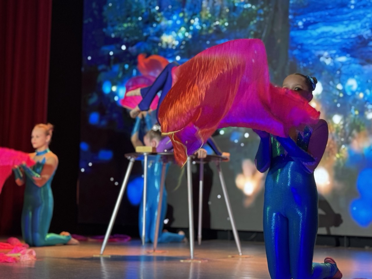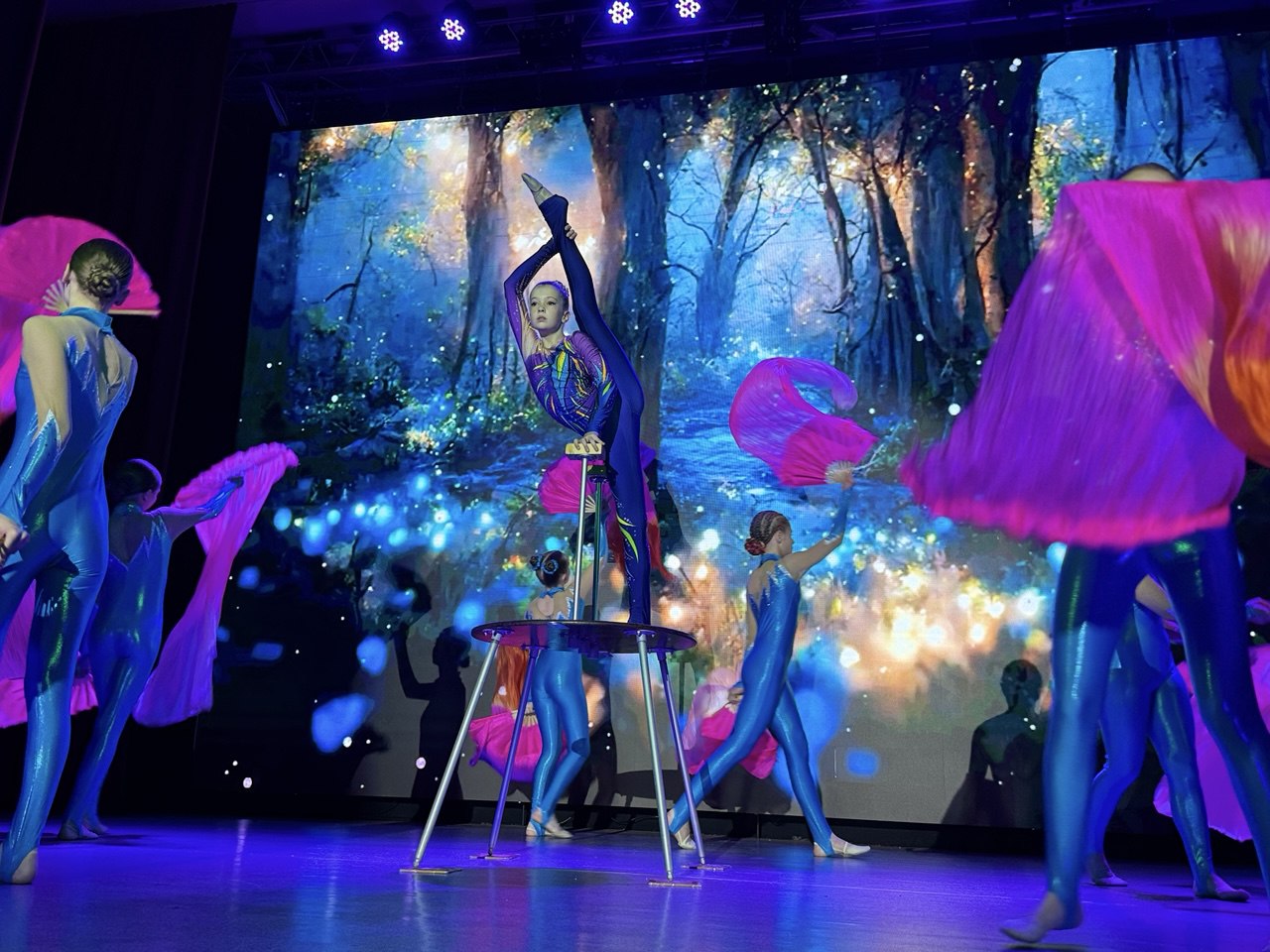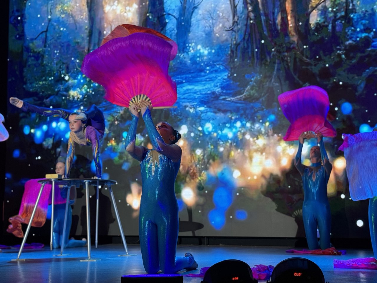 На протяжении всего путешествия для гостей выступали цирковые артисты образцовых цирковых студий «Кураж» и «Ритм». Баба Яга вместе с Лешим придумали для ребят веселые игры, танцы и шоу мыльных пузырей, которые светились и переливались в темноте.