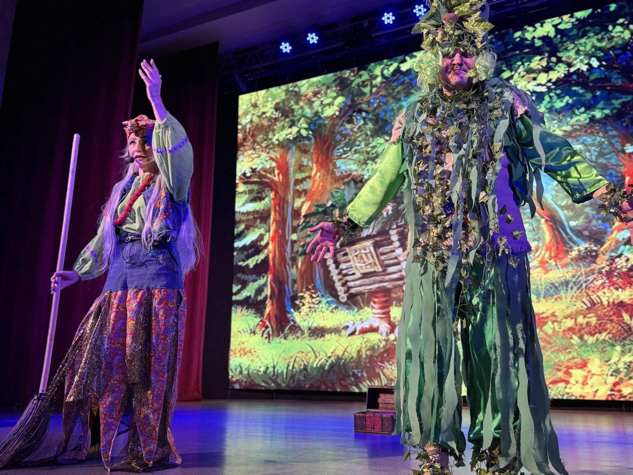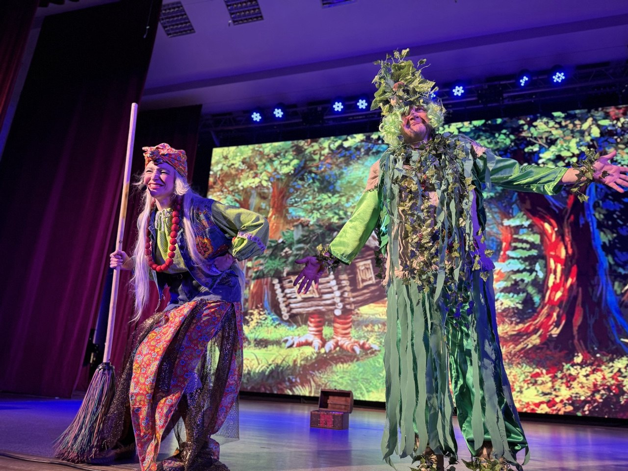 Зрители вместе с главными героями Домовым и девочкой Ульяной переместились в сказочный лес в гости к Бабе Яге и Лешему, где их ждали незабываемые приключения и погоня за волшебным сундучком со сказками.