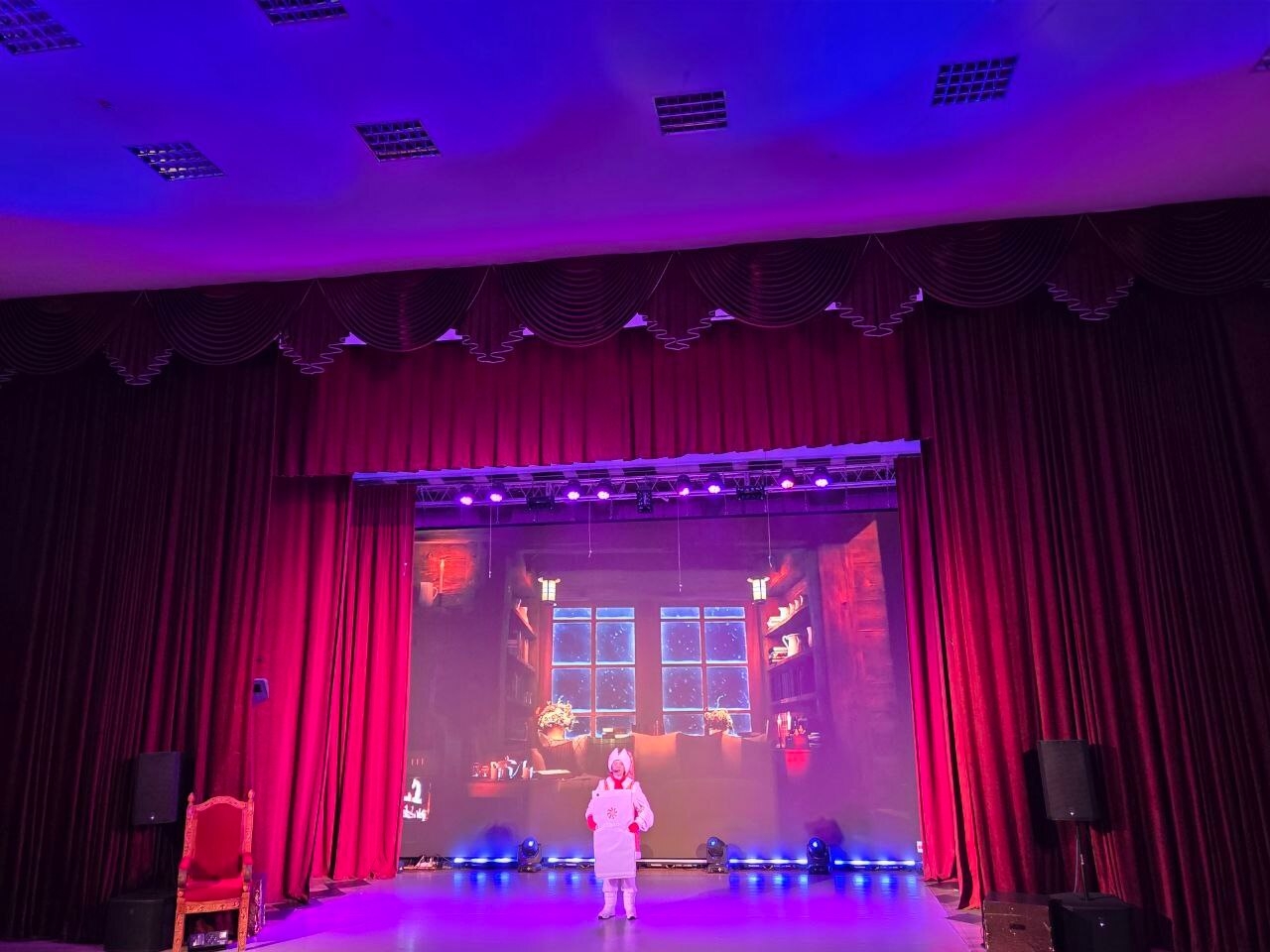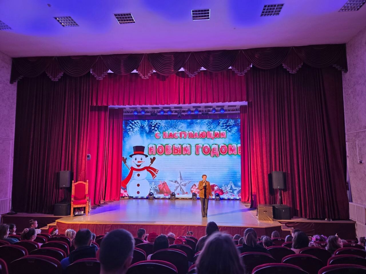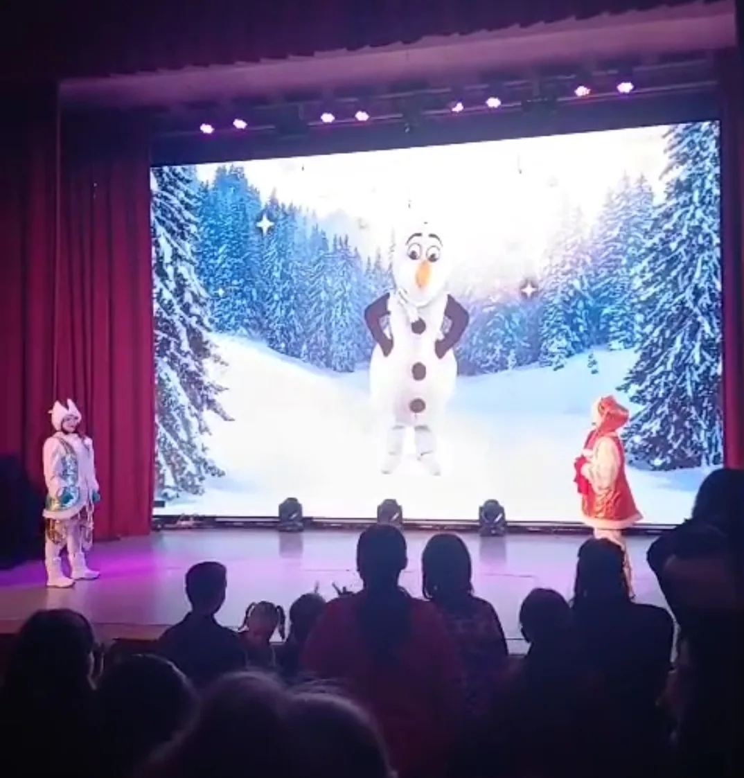 Сказочные персонажи Маша и Стеша вместе со зрителями сыграли в игры «Друга найти», «Угадайка зимние буквы», «Обуться» и «Одеться», «Подарки», "Елку наряди", "Танец с Олафом"