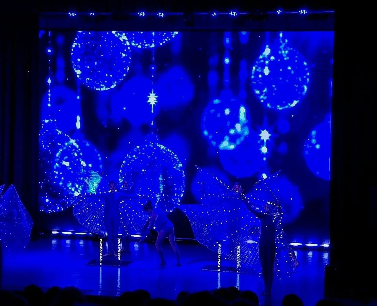 Украшением шоу стали яркие новогодние номера в исполнении образцовых цирковых студий "Кураж" и "Ритм", а также студии актерского мастерства "Театрум".