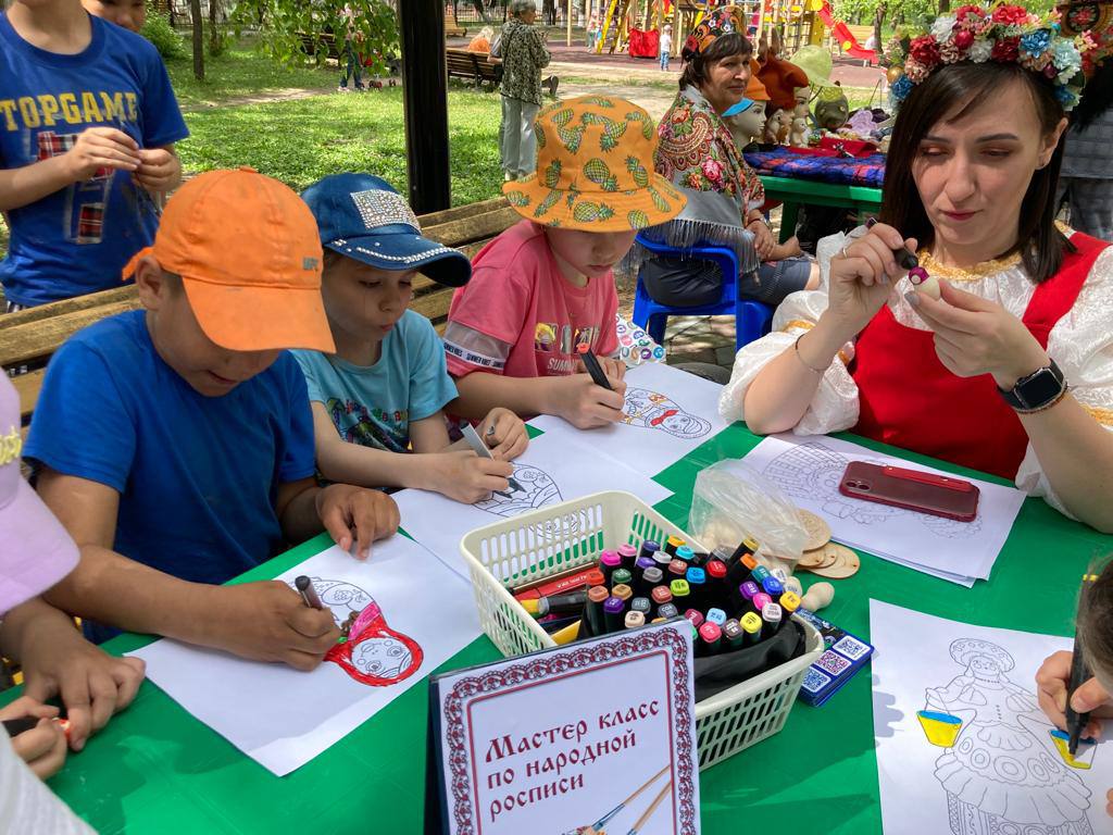 4 июня в Парке микрорайона Амурсельмаш, в рамках муниципального гранта, состоялся праздник «Путешествие в Фольклор Град». Для детей и их родителей творческий коллектив МАУ «ДК АСМ» подготовил фольклорную театрализованную концертную программу, состоящую из разно жанровых народных номеров с играми и конкурсами. Более 500 зрителей разного возраста прогулялись по улицам Фольклор Града вместе с Хозяюшкой. На улице Умельцев ребята учились рисовать народную роспись по дереву. На Ярмарочной улице познакомились с выставкой народных мастеров. На Песенной улице подпевали Матрене Ивановне. На Затейной улице играли в народные игры. На Весёлой околице танцевали под казачьи песни. На улице Музыкальной научились игре на народных инструментах. Каждый желающий смог сфотографироваться с Горынычем возле фотозоны «Матрешки» и «Врата счастья». Приобщая детей к народному творчеству, мы тем самым приобщаем их к истории русского народа, к нравственным общечеловеческим ценностям, которых не хватает в наше время.