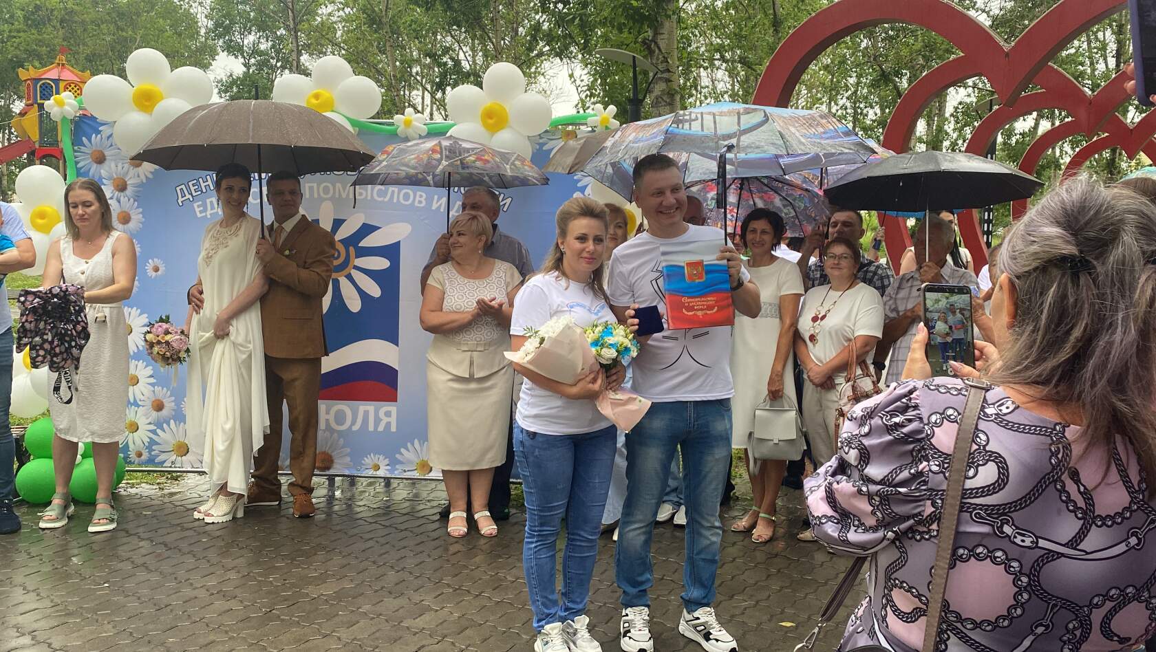 Также на празднике поздравили молодоженов, которые в этот день решили узаконить свои отношения. Это Семен Панасенко и Валерия Пальчикова; Николай и Марина Зенковы; Андрей и Ольга Сиренко; Александр и Жанна Жаргаловы; Валерий и Ольга Кудрявцевы, Александр Мамонтов и Наталья Глущенко.