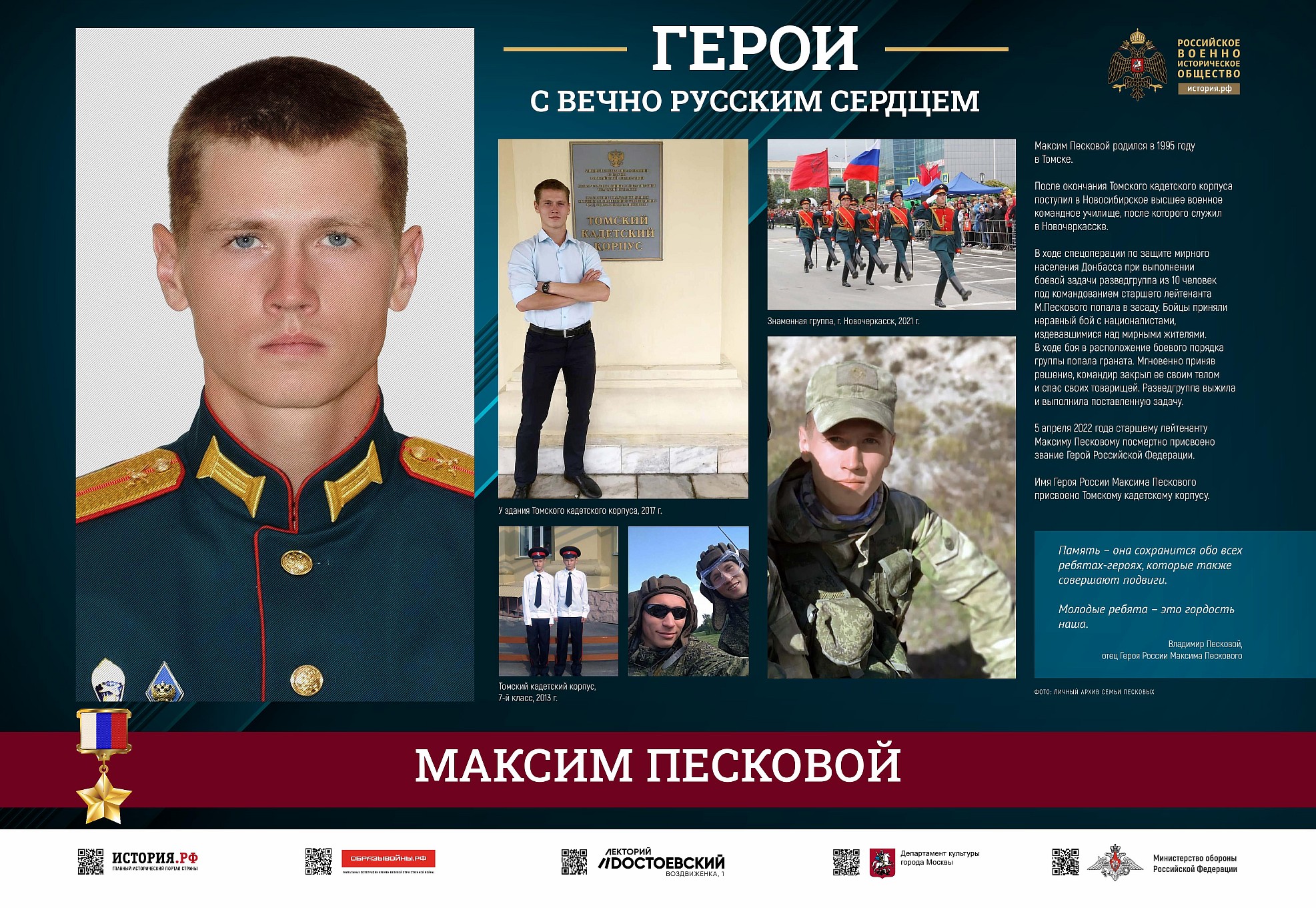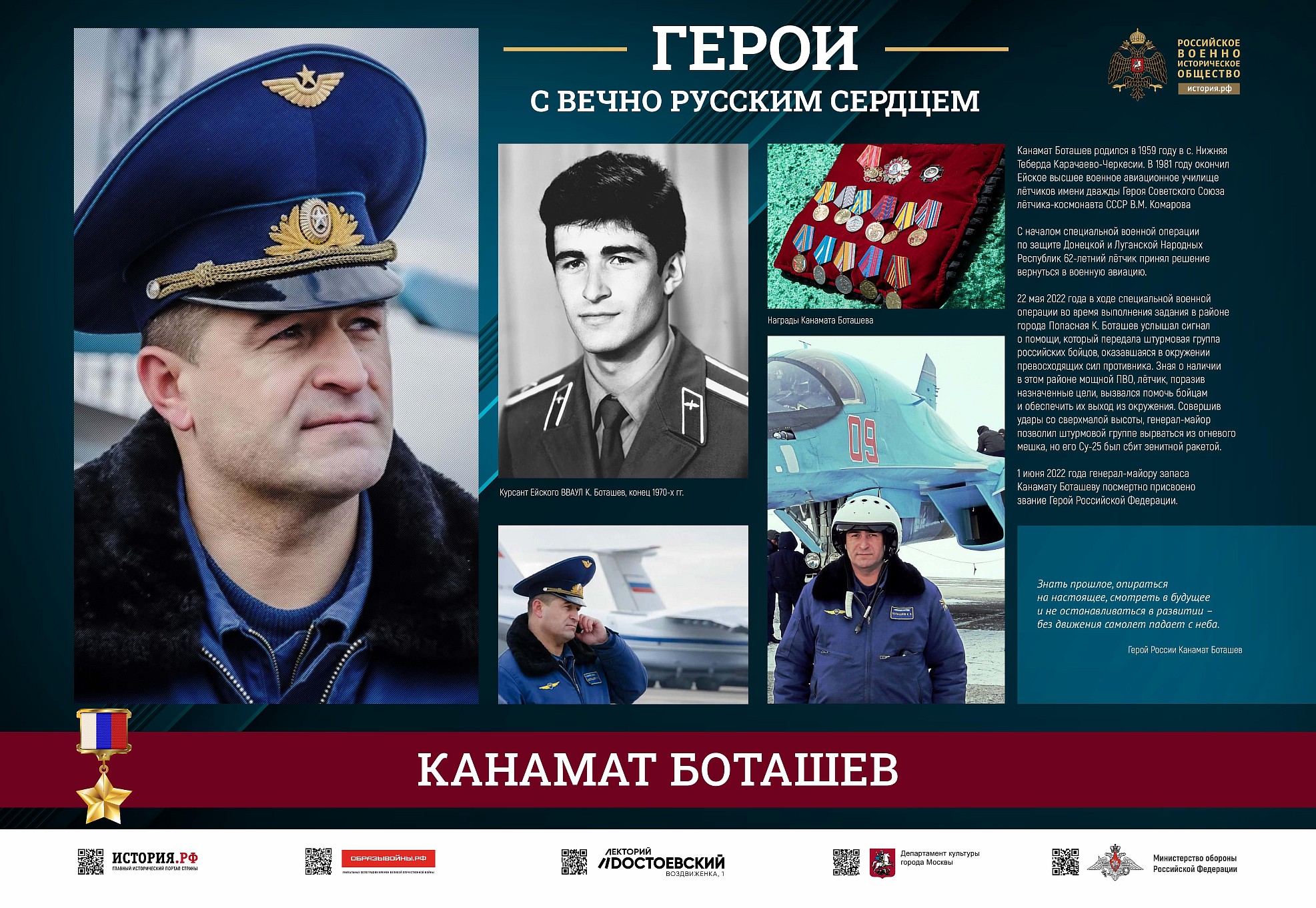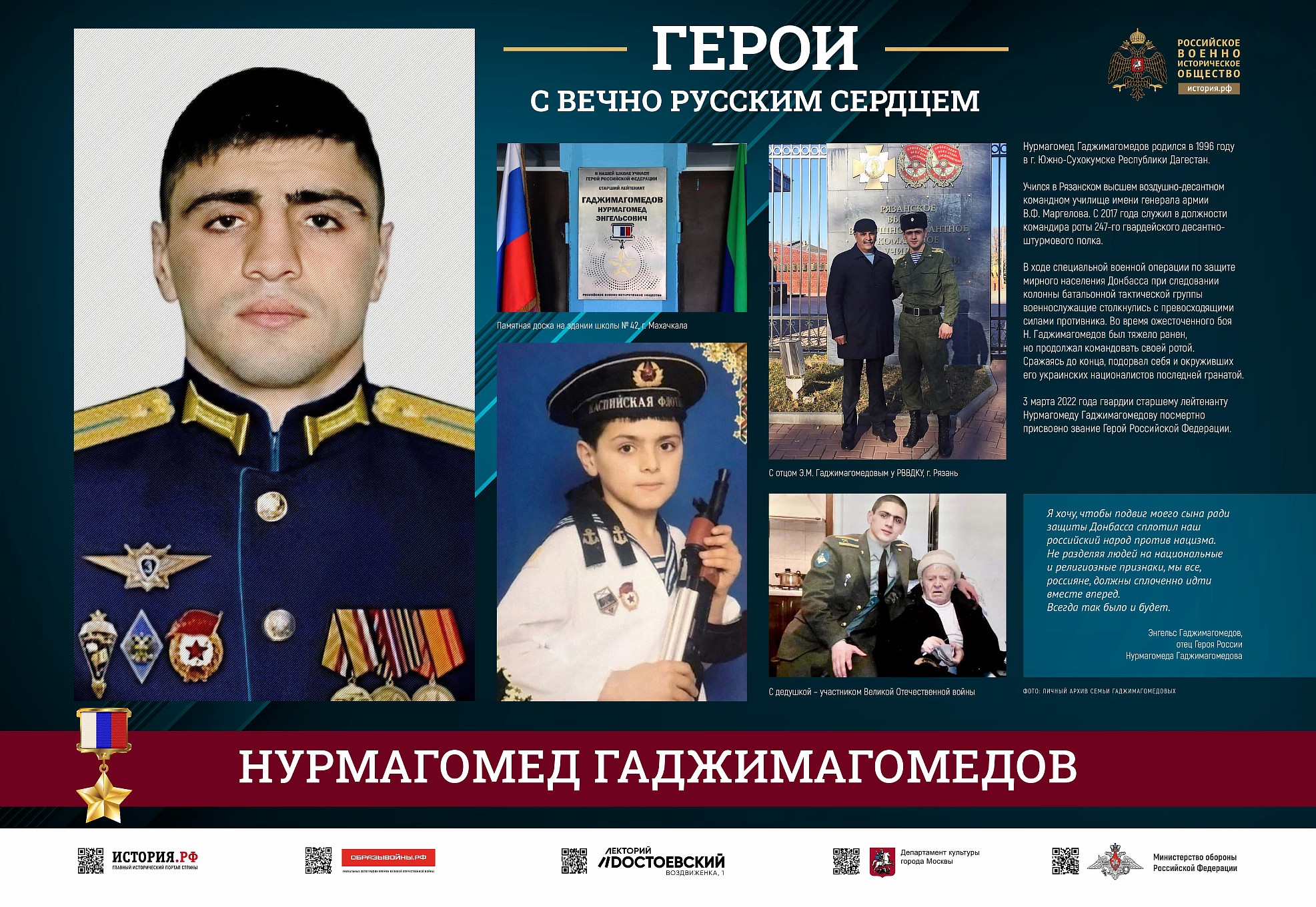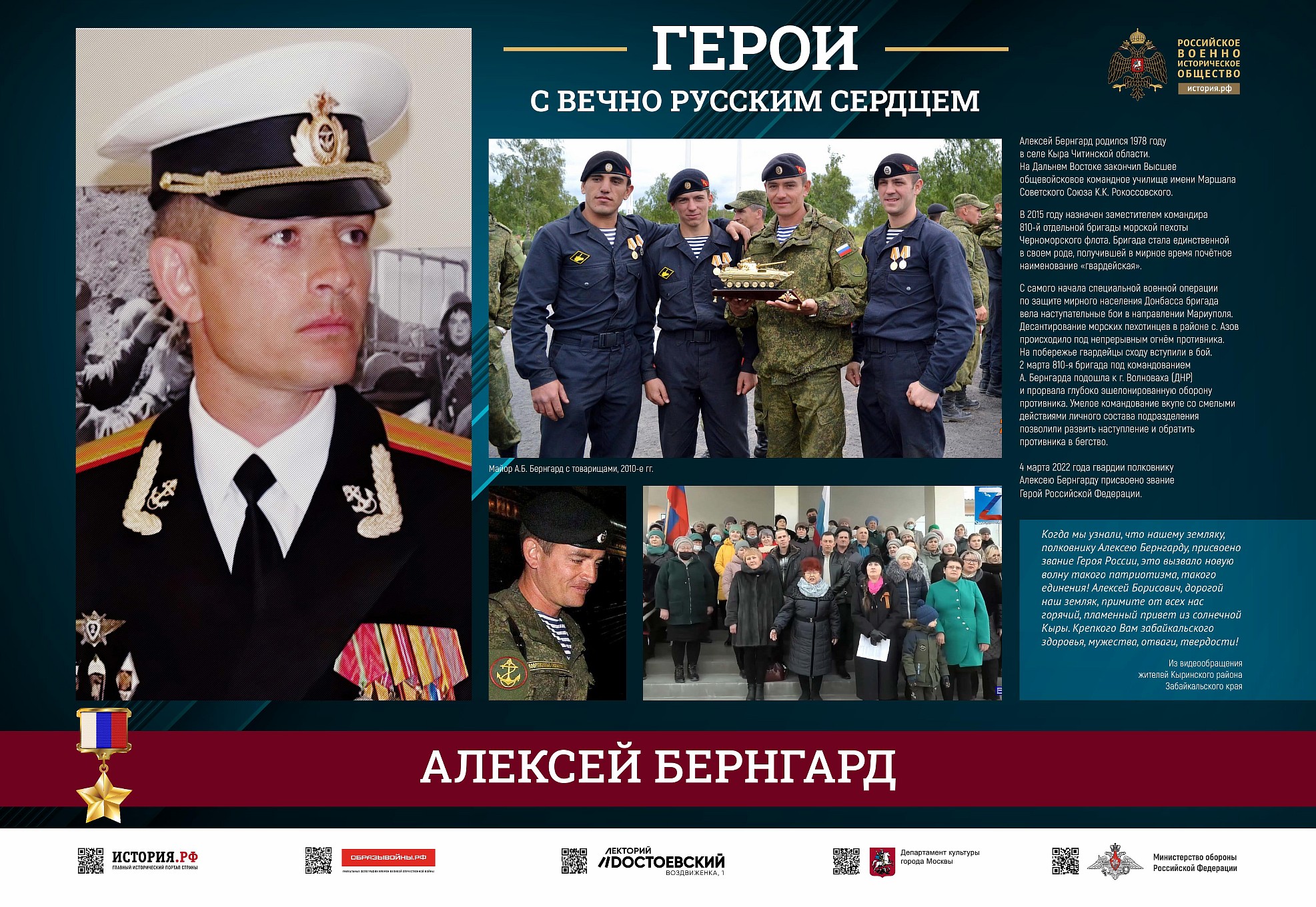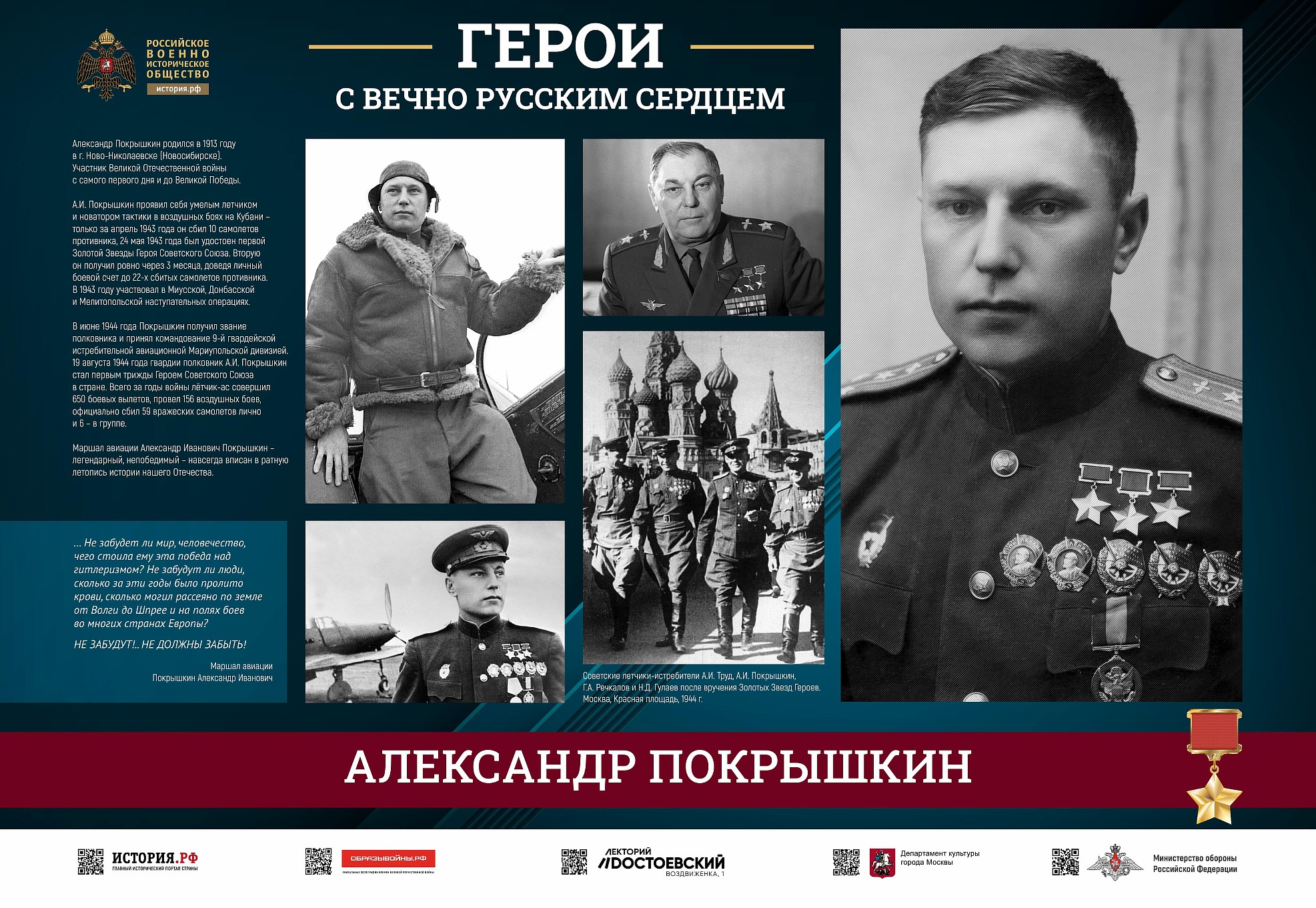 Фотовыставка «Герои с вечно русским сердцем» создана Российским военно-историческим обществом при поддержке Министерства обороны Российской Федерации.