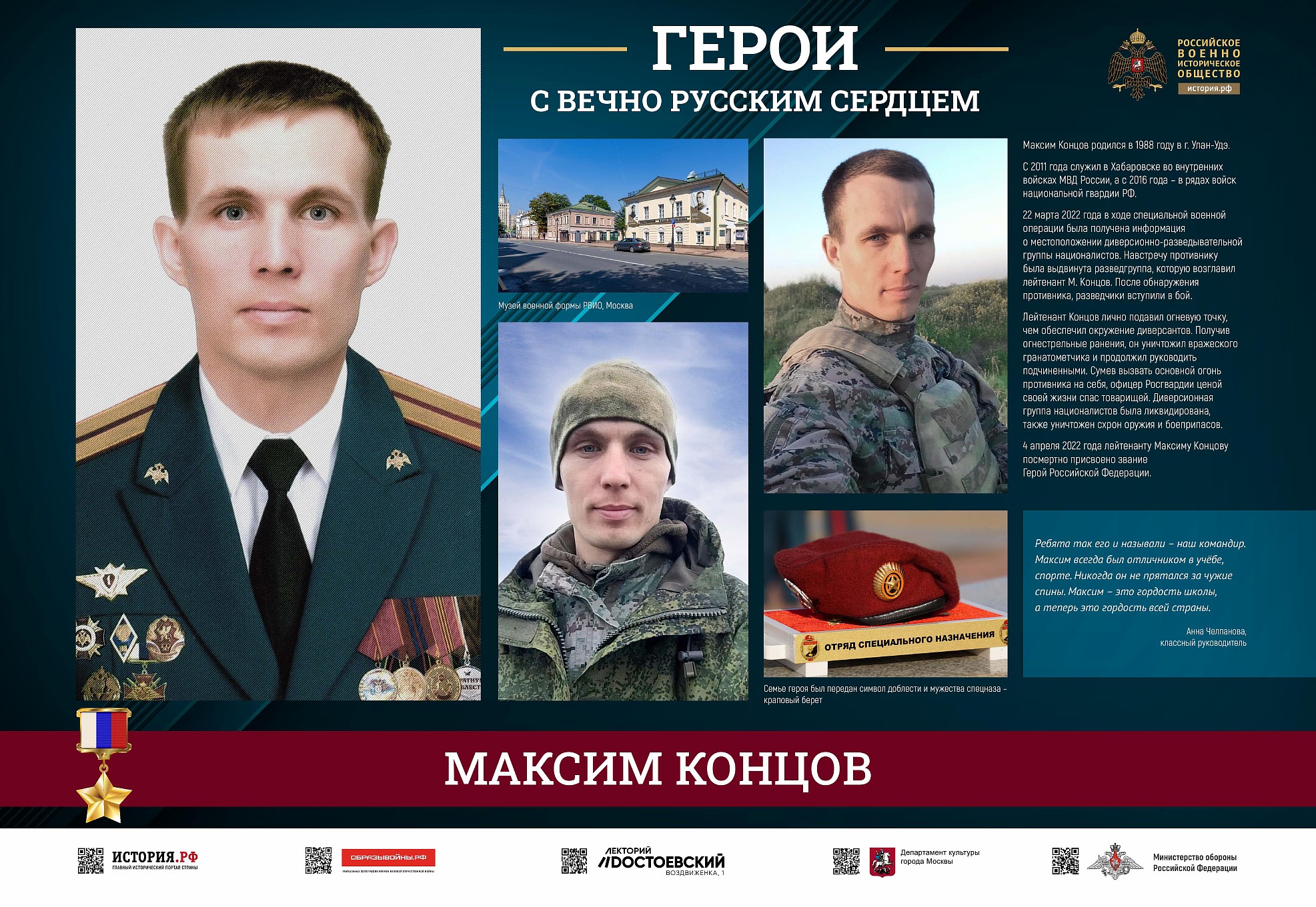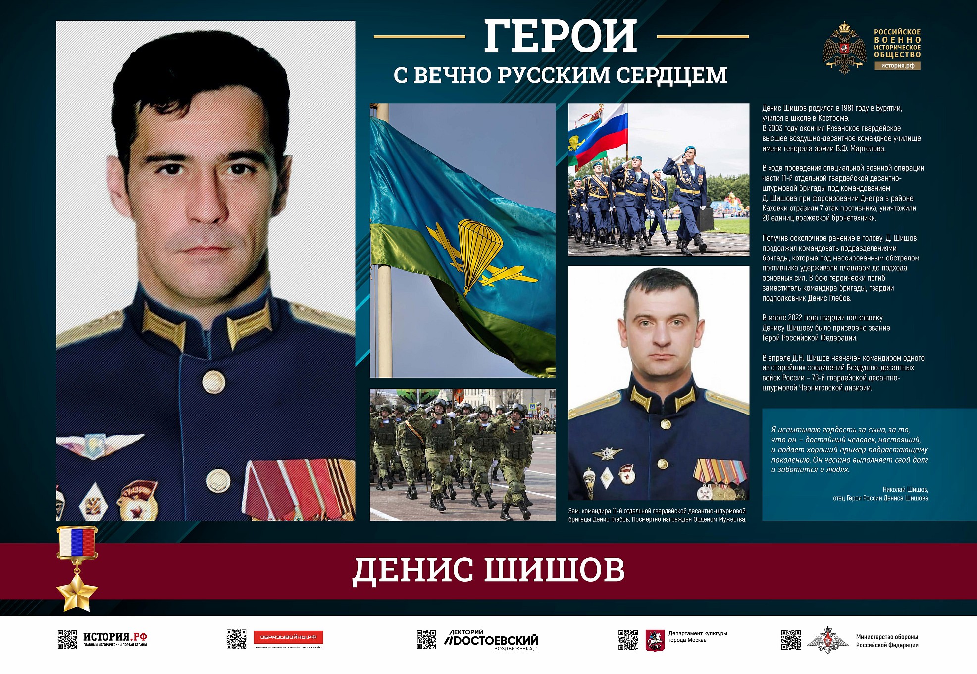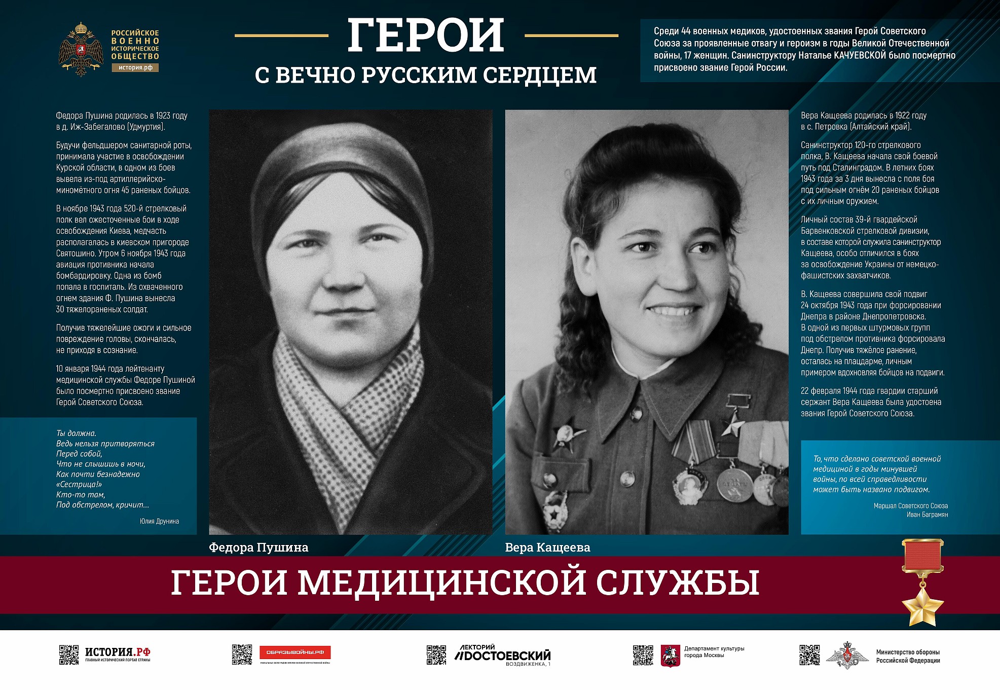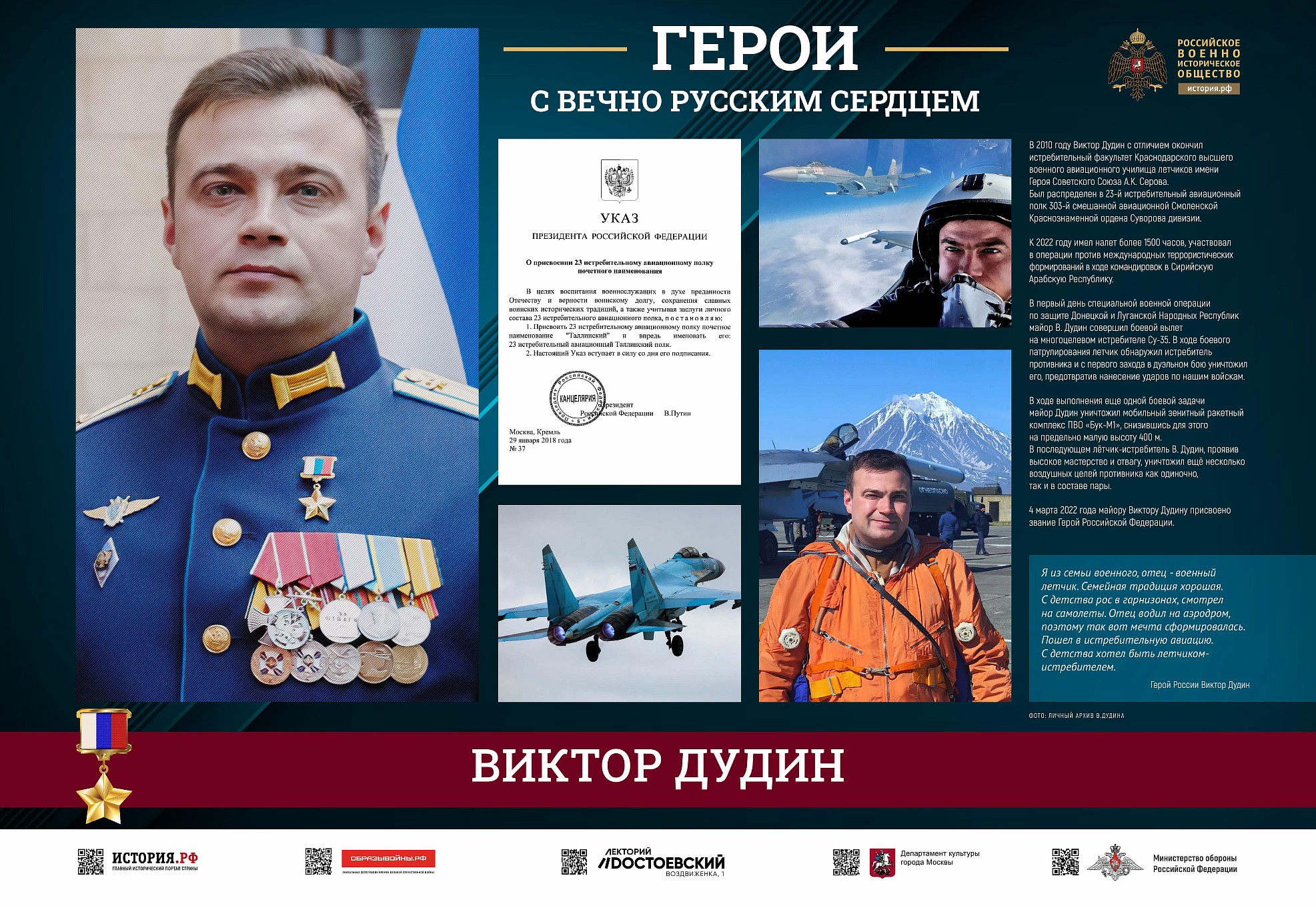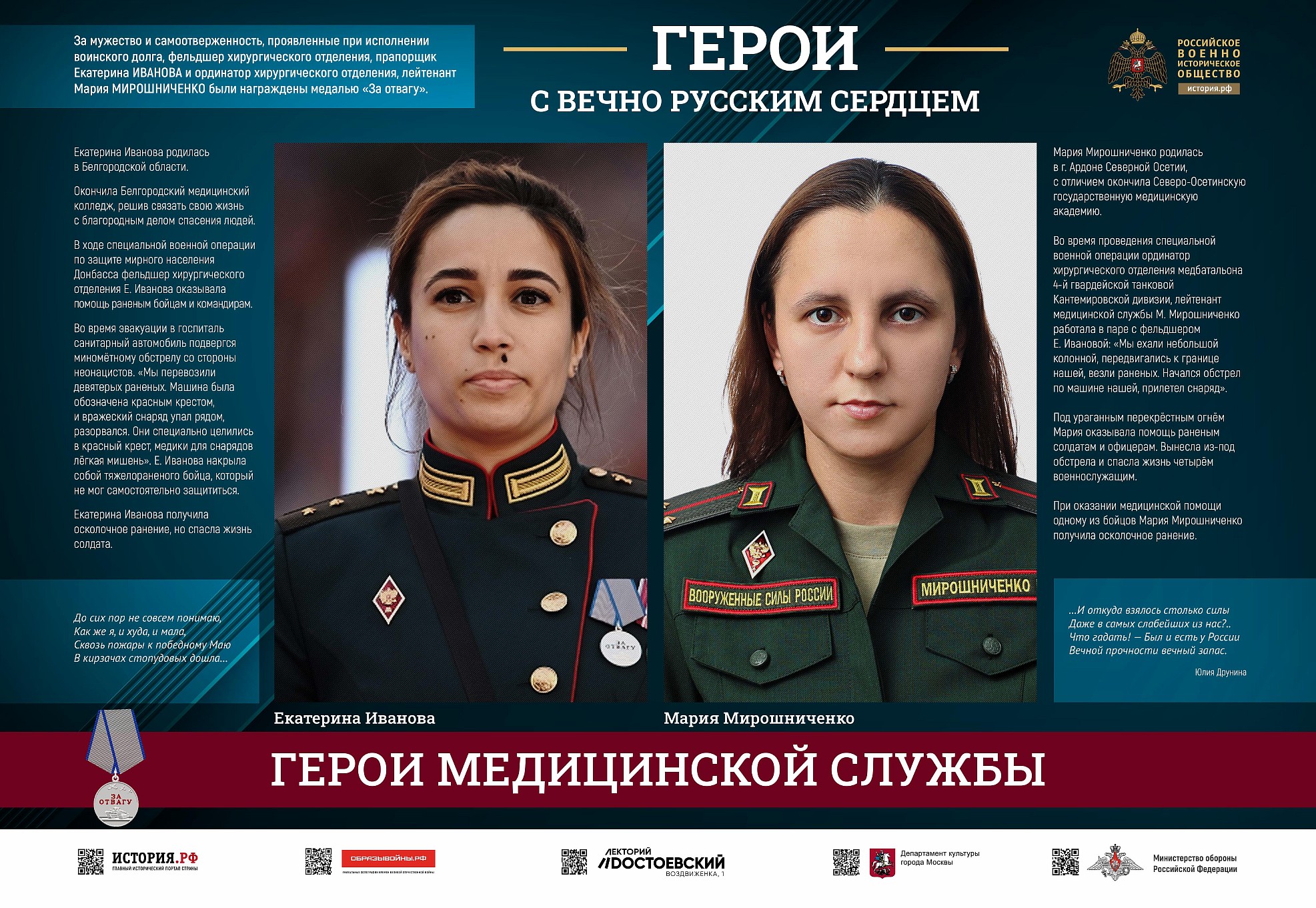 Фотовыставка «Герои с вечно русским сердцем» создана Российским военно-историческим обществом при поддержке Министерства обороны Российской Федерации.