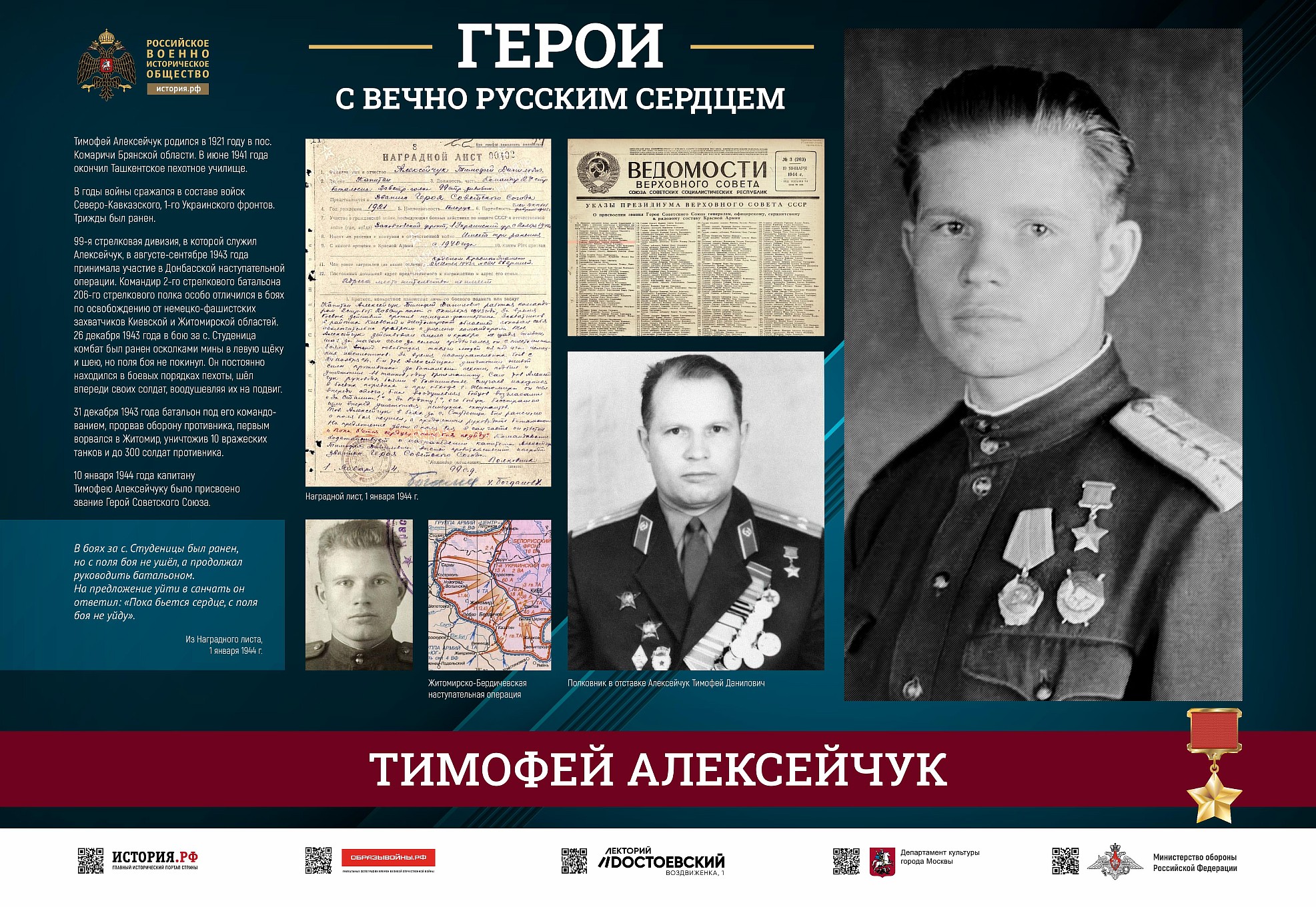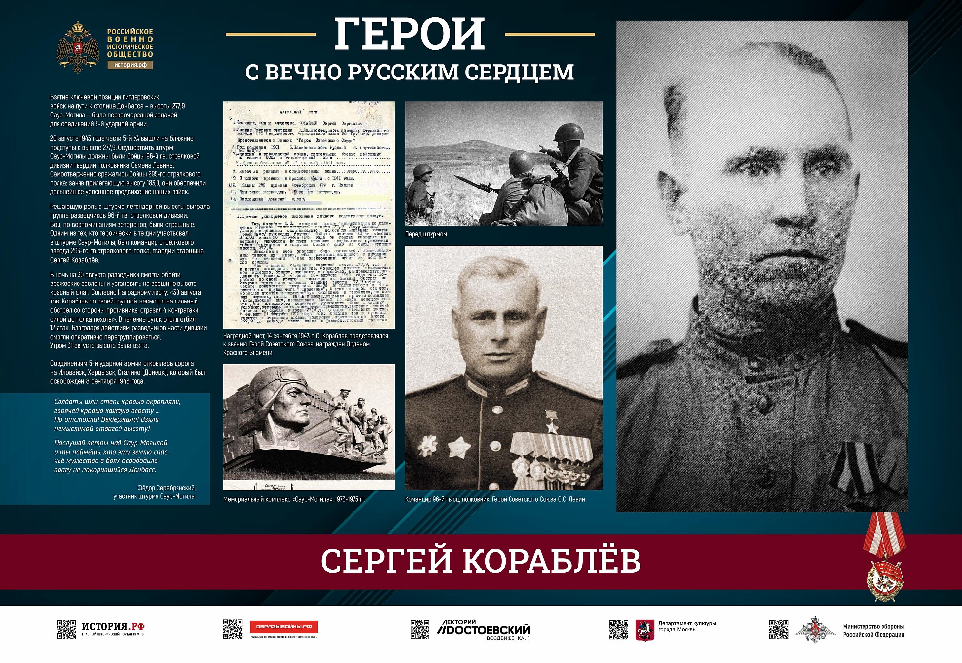 Проект посвящен подвигу солдат и офицеров Красной армии, освобождавших Украину от немецко-фашистских захватчиков в 1943-1944 годах, и современных героев – участников СВО.