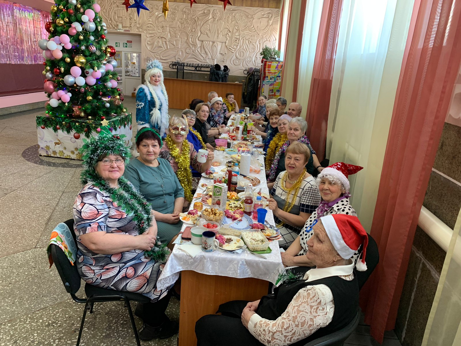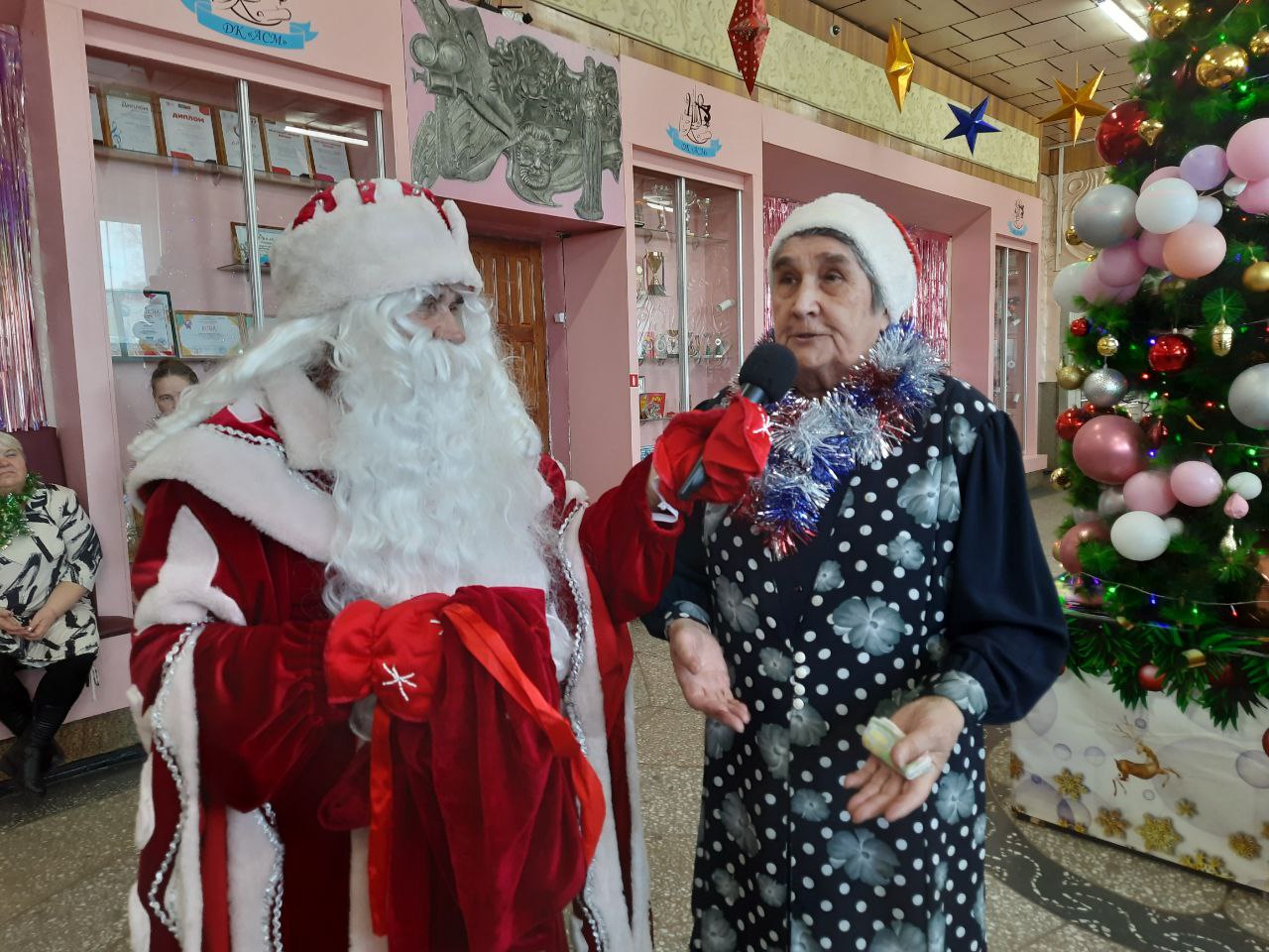 Главными героями вечера стали Дед Мороз со Снегурочкой. Они водили хороводы, пели песни, загадывали желания, слушали стихи и поздравления гостей.